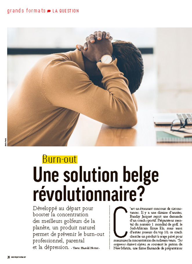 L’étude fait le tour de la planète et est publiée dans le très sérieux Journal of International Medical Research. Le complément alimentaire se trouve un nom, le Grintax, et est ensuite validé pour le burn-out et la dépression par d’autres scientifiques, en Allemagne, en Angleterre ou en Belgique. Un succès auquel ne s’attendait pas la firme flamande.*